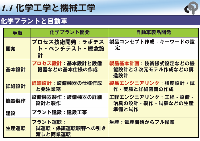 そこで化学工学を基本とする化学プラントと機械工学を基本とする自動車工業を、その開発から製造建設、そして生産運転に至る工程を比較してみたい。