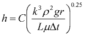膜状凝縮には垂直面での凝縮と水平面での凝縮があり、先ほどの推算式の係数が違っています。垂直壁や垂直管で係数Cは 0.943 として与えられており、水平管では L を管の外径に置き換えて、係数Cは 0.725 と与えられています。