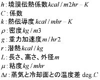 実際の装置における凝縮はおそらく膜状凝縮と滴状凝縮の中間ではないかと考えられているのですが、実際の設計では安全を見て膜状凝縮における熱伝達係数を採用しています。