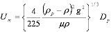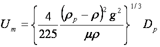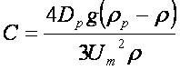 ただし、gは重力加速度[m/sec2]、ρpは液滴密度[kg/m3]、ρはガス密度[kg/m3]、Dpは:液滴径[m]、そしてCは抵抗係数を意味しています。