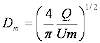 これより分離ドラム径Dmを次式で計算します。