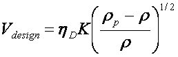 デミスタが付いた分離ドラムではデミスタにおける液滴の補集効率を考慮した計算式がメーカーから提案されている。一般的には、速度定数をK、設計効率をηDとすると、デミスタにおける設計流速Vdesignは次式で計算できる。