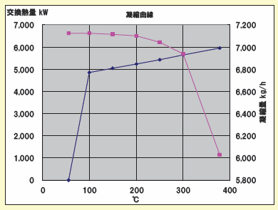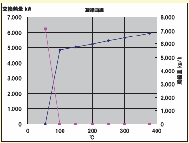 凝縮曲線 青色→交換熱量、赤色→凝縮量