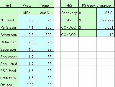 - PSAにて製品水素(Product H2)と残ガス(Off gas)を分離する機能を追加(表2に示す)